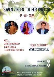 Op D.V. zaterdagavond 17 januari 2026 wordt er een concert gehouden met het thema Samen zingen tot eer van God in Middelburg.