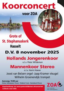 Op zaterdagavond 16 maart 2019 wordt er een jubileumconcert met een cd presentatie gehouden in de Grote kerk te Dordrecht. Aanvang en toegang concert Grote kerk te Dordrecht De aanvang van het concert in de Grote kerk te Dordrecht is om 19:30 uur. De kerk gaat om 18:45 uur open. Er zal een pauze gehouden worden met consumpties. De entree is €8,00 voor volwassenen en kinderen tot en met 12 jaar hiervoor is de toegang gratis. De opbrengst van deze zangavond is bestemd voor Hulp Vervolgende Christenen, Helpende Handen en Christenen voor Israel. Medewerkenden concert Grote kerk te Dordrecht Aan